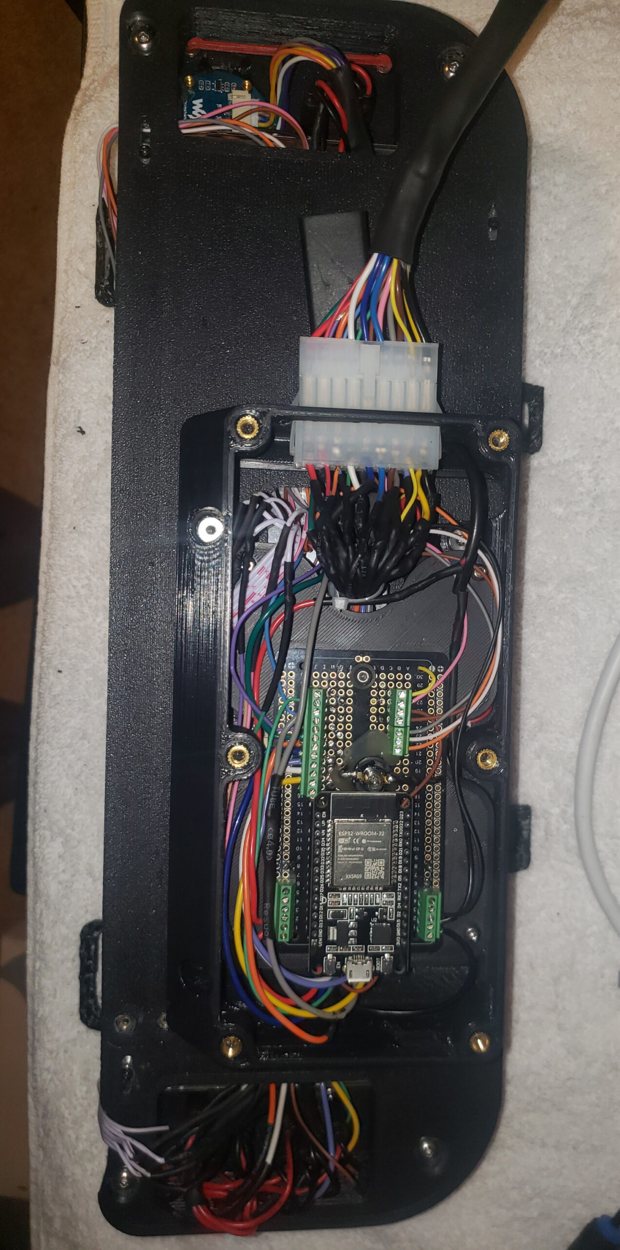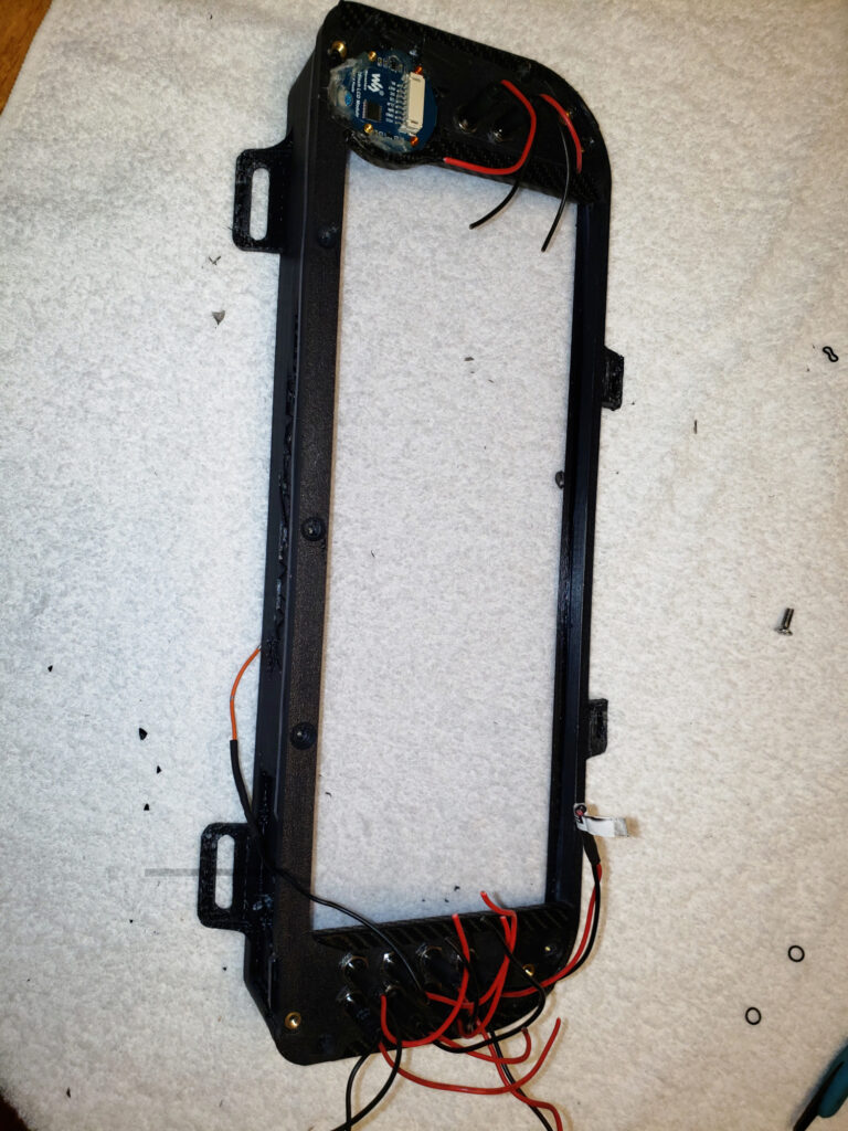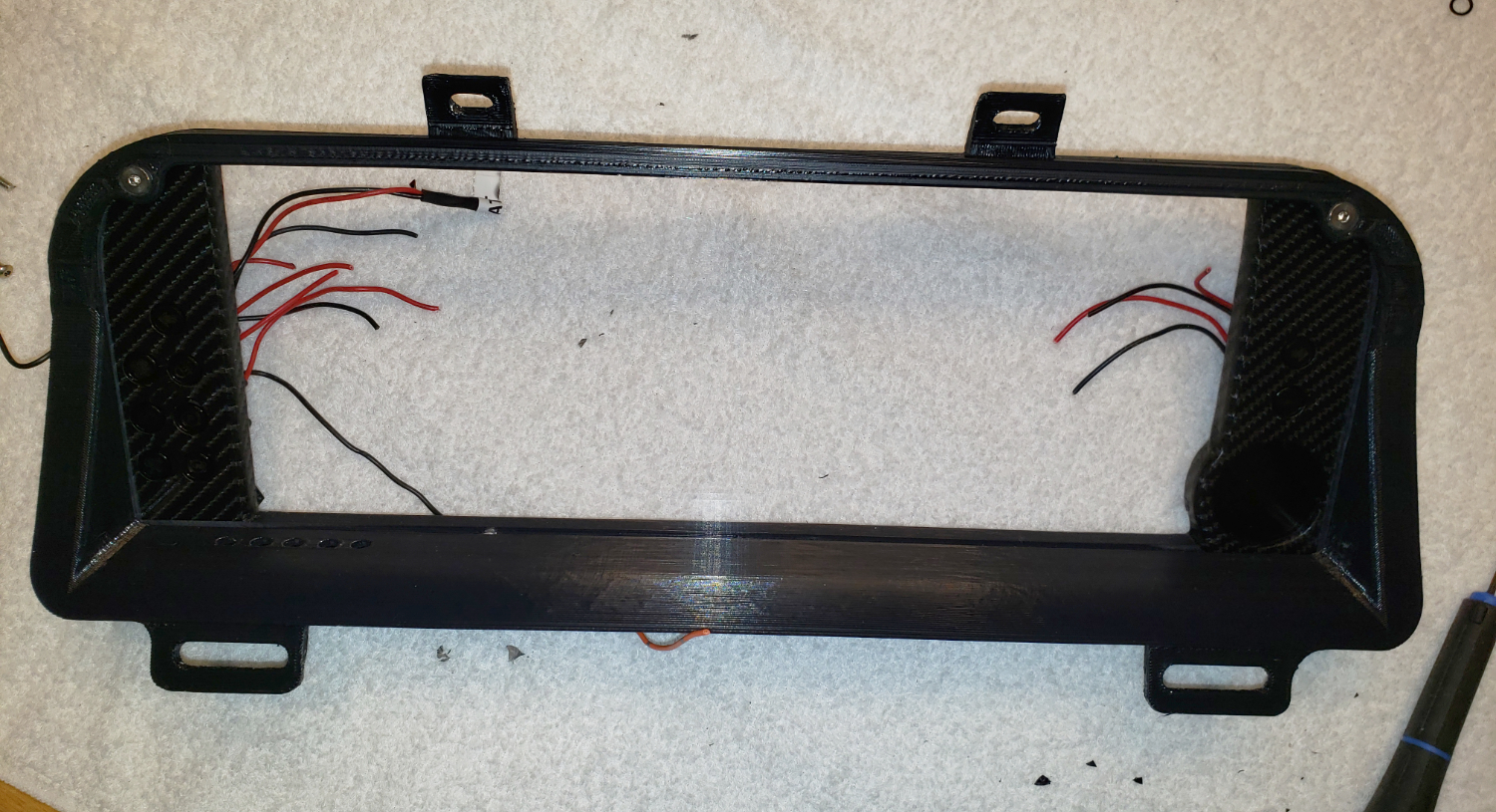 Step 2. You will again be using M4 inserts and placing them in the front side of the bezel in the locations shown in the picture. These locations are used to hold the outer bezel to the inner bezel. At this same time if you are using external indicators and/or fuel gauge bezel option than this when you will begin securing them into the bezel with pigtail wiring coming out the back as shown.