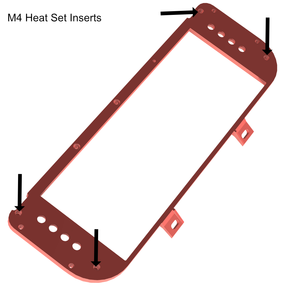 Step 1. You will be using M4 inserts and placing them in the locations shown in the picture below on the back side of the bezel. These locations are used to attach the base plate to the inner bezel assembly.