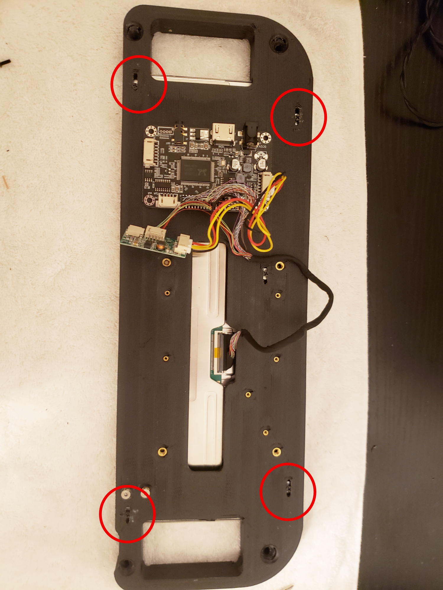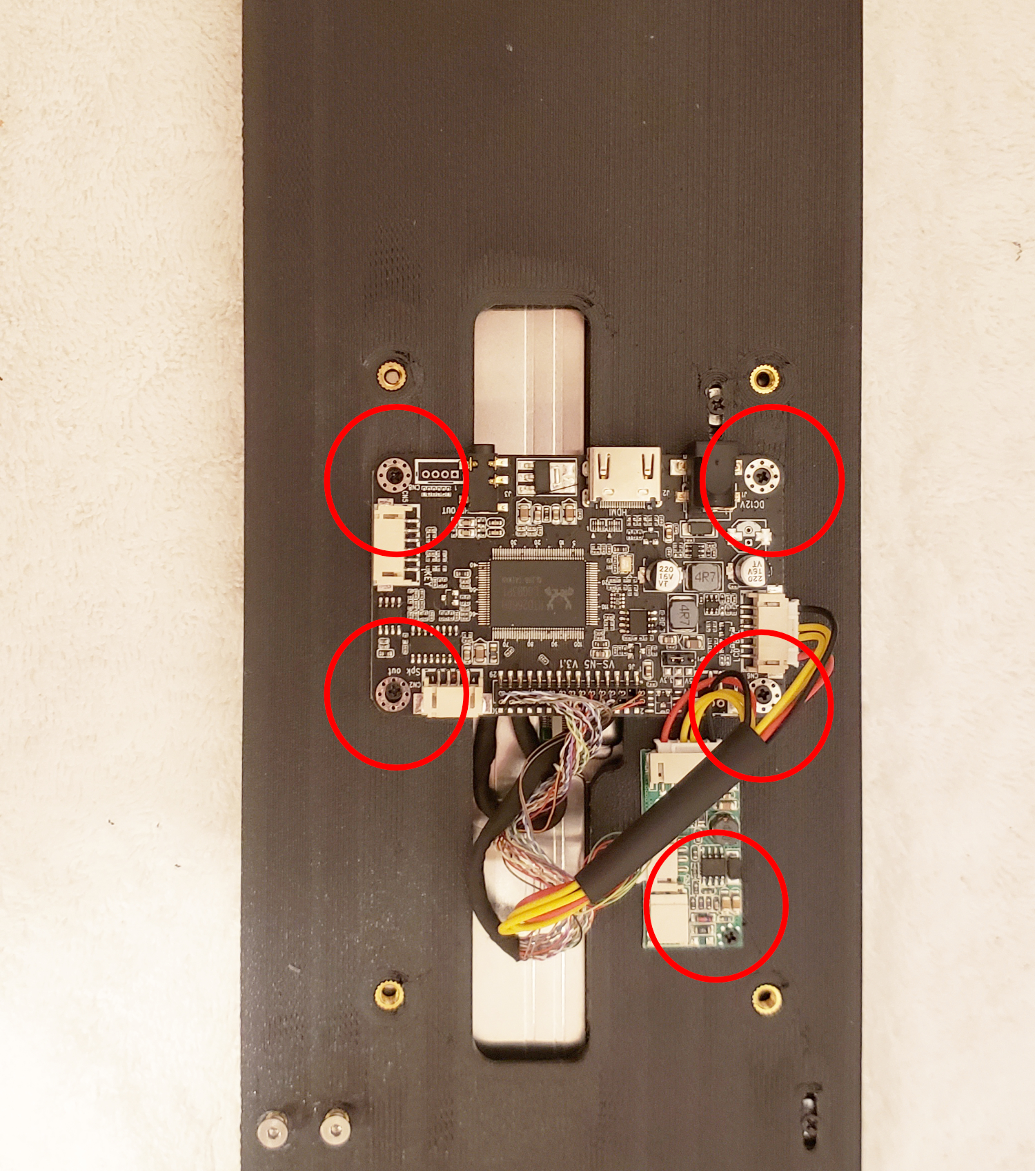 Step 3. Next Mount the screen by placing it in the base plate and securing in the following locations using M2 Screws.