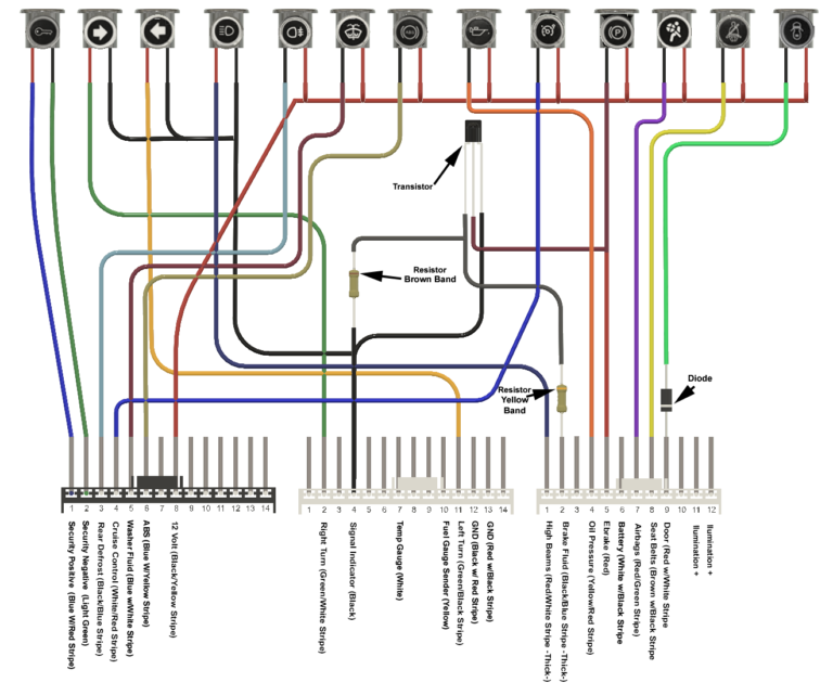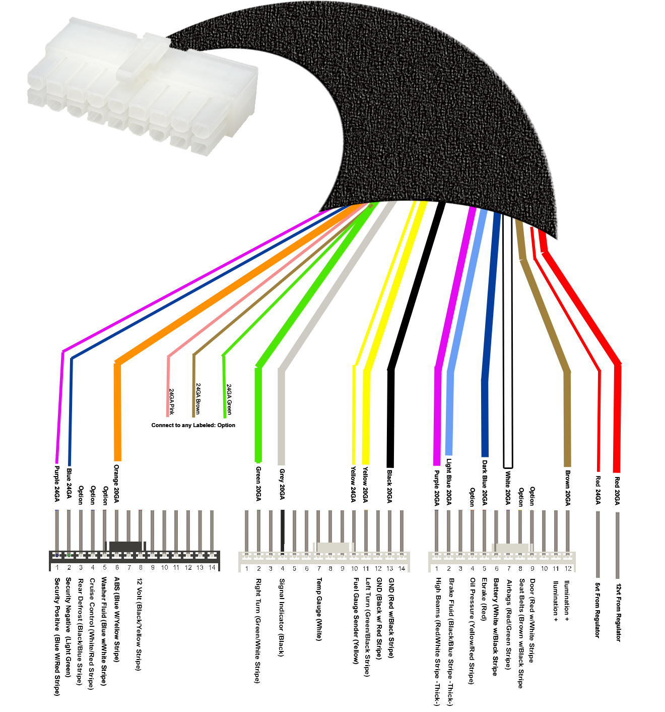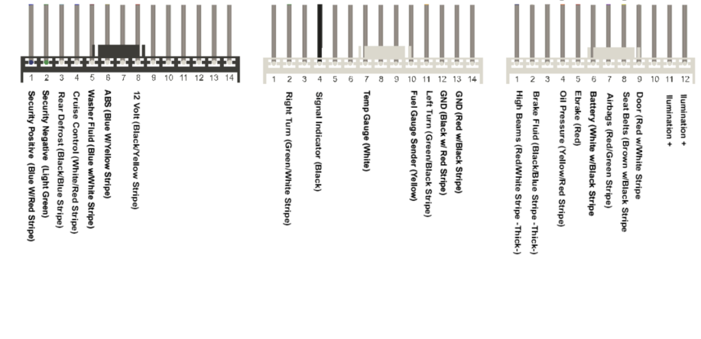 Below is the pinout of the stock gauge cluster connectors by connector color and orientation. This information can be utilized for connecting external and software driven indicators.
