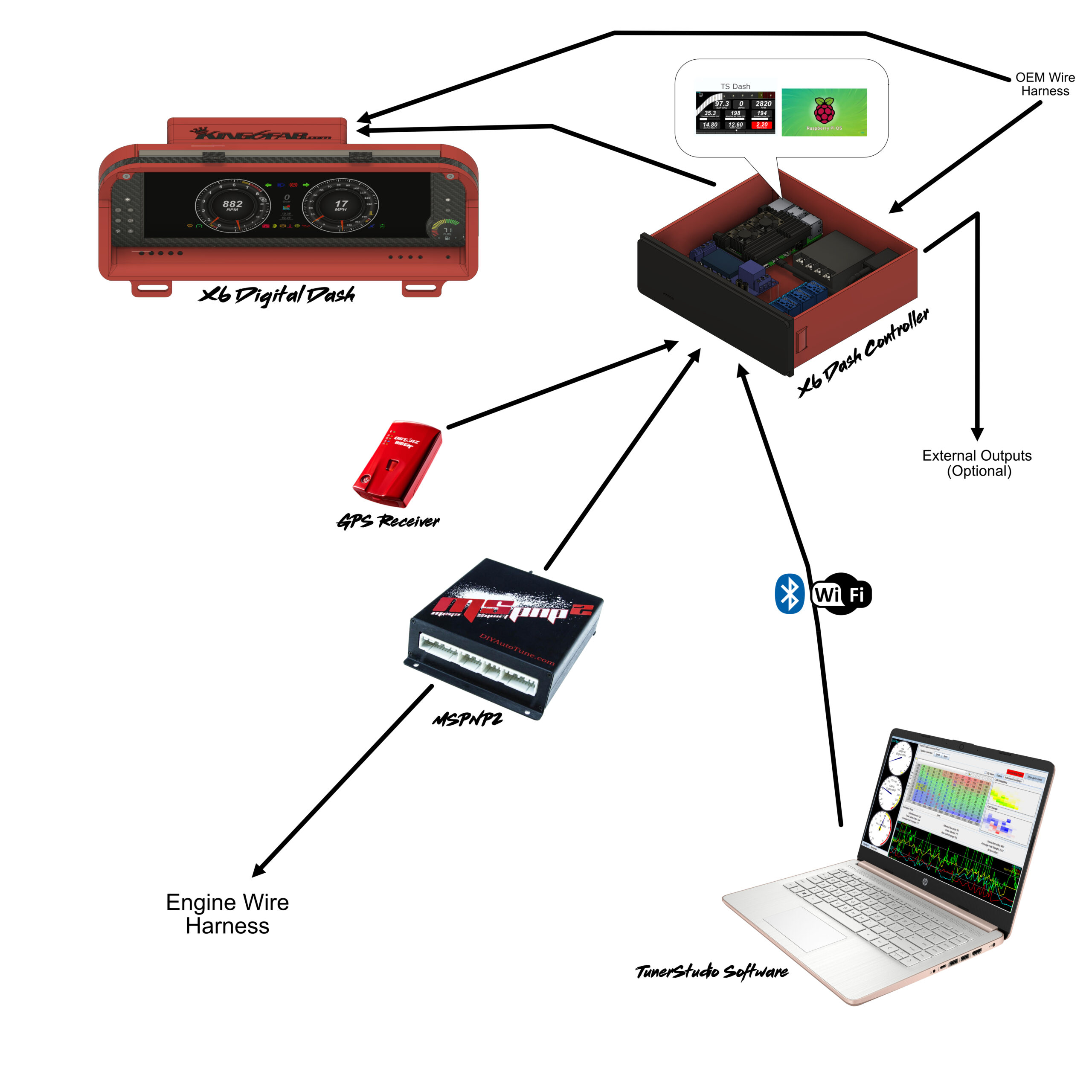 Below is a picture outlining the full potential with the setup I’m using. I am able to run TSDash on the Dash Display while simultaneously connected wirelessly to the PI with a laptop and tune on the controller while the dash is displaying. Im also able to connect a GPS to the PI for performance information