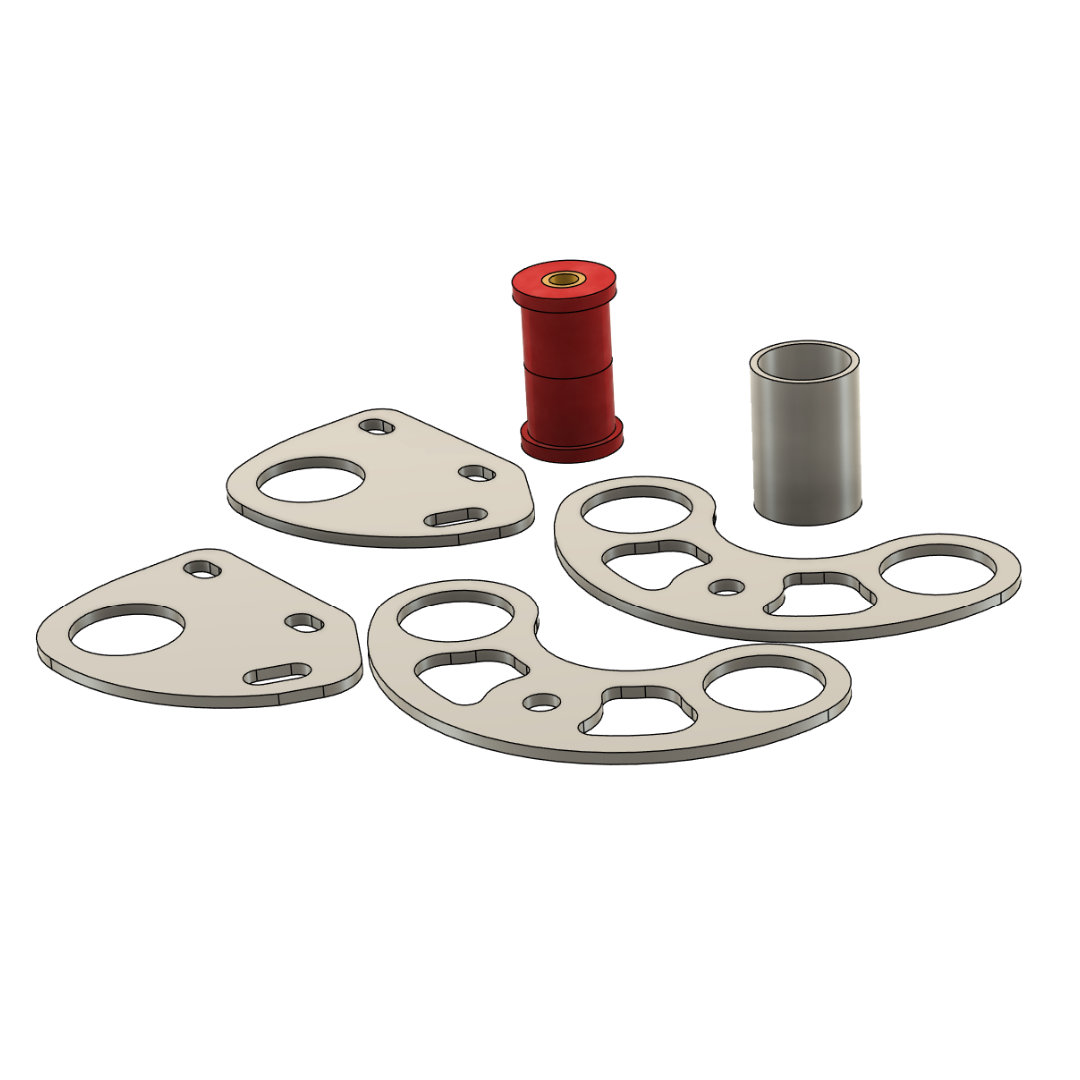 We supply the difficult to design CNC cut parts, you supply tubing of your choice. ERW tubing is inexpensive and available most anywhere. DOM Tubing is much stronger and can be found in many thickness’s.  This is an ideal choice for international buyers as these parts can ship in a flat rate box. The easiest way to fabricate this setup is to mount the end brackets to your vehicle, measure the inside dimensions of the brackets, cut your tube to those dimensions and tack weld it in place. Then attach the polyurethane bushing assembly to the motor mount bracket, measure from your tube to the bushing, and tack weld that in place. Once all parts are tack welded, remove the assembly and finish welding.